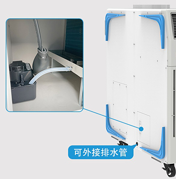 內置智能排水泵,外接排水管。