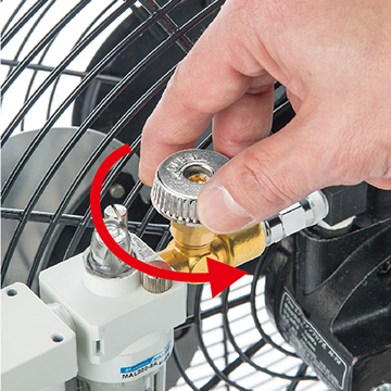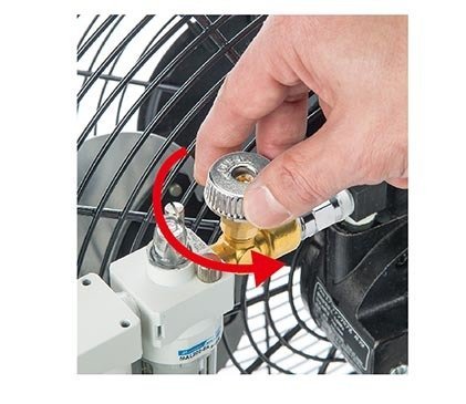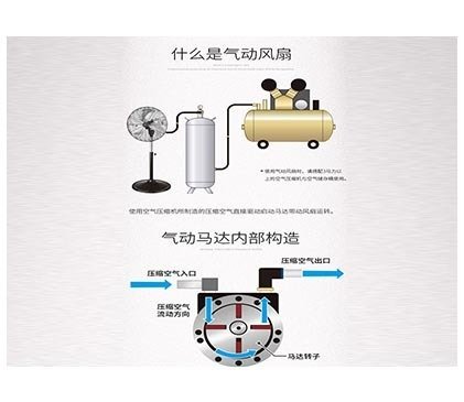 使用空氣壓縮機所制造的壓縮機空氣驅動馬達,帶動風扇運轉。